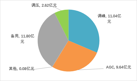 从电力辅助服务补偿费用的结构上看,调峰补偿费用总额11.04亿元,占总补偿费用的31.37%;自动发电控制(以下简称AGC)补偿费用总额9.64亿元,占比27.41%;备用补偿费用总额11.80亿元,占比33.54%;调压补偿费用2.62亿元,占比7.45%;其他补偿费用0.08亿元,占比0.23%(见图2)。