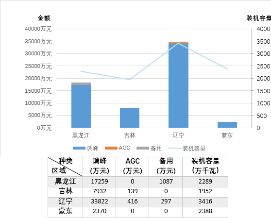 图8东北区域分省(地区)电力辅助服务补偿分项费用情况