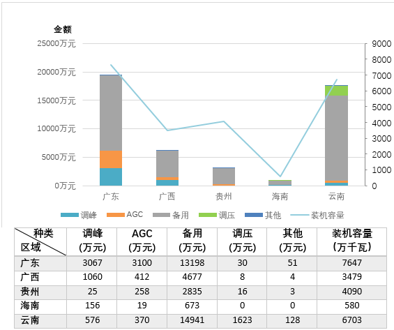 图12南方区域分省(区)电力辅助服务补偿分项费用情况